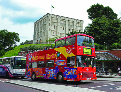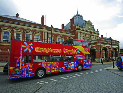 Explore the city at your leisure, allowing your City Sightseeing bus tour commentary to highlight all the attractions along the way. Hop off at The Assembly House, Norwich’s premium meeting place for dining, music recitals, jazz evenings, and banqueting. You can also admire the art exhibits displayed in the Noverre Gallery and Hobart room. While in the vicinity you will see the grand building which is the City Hall, and nearby is the magnificent Country & Eastern Gallery. Formerly a Victorian Skating Rink, this unique, listed building has been imaginatively restored and is now home to spectacular displays of an interesting range of textiles, traditional and antique furniture, ceramics and decorative objects imported from the East. Discover the history and culture of the Broads, a series of rivers and broads (lakes). Boats are available to hire and waterside pubs and restaurants line the river. Mousehold Heath is an area of heathland and woodland which is now mostly covered by semi-natural woodland, although some areas of heath remain and are actively cared for. The area presents 200 acres of woodland and open space where you will find football pitches, a pitch-and-putt course and a band stand.