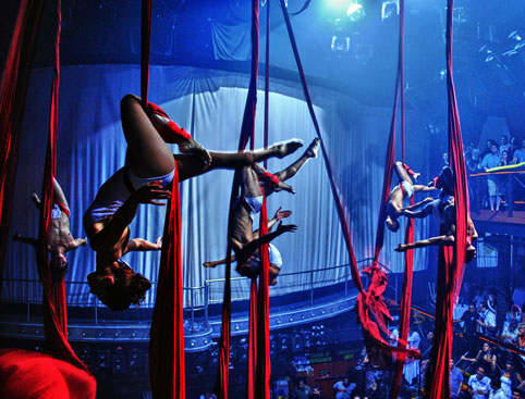 Get ready for this, flying acrobats, bar top conga lines, movie clips projected on to high tech video screens, live bands, Dj's that adds up to the adrenaline and energy level as the night progress.