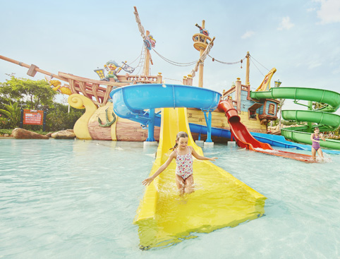 - Experience with the children an incredible pirate adventure in the children’s pool that shelters a pirate ship filled with Sesame Street characters. For adults, there is a Caribbean-themed pool designed for swimming, enjoyment and relaxation.