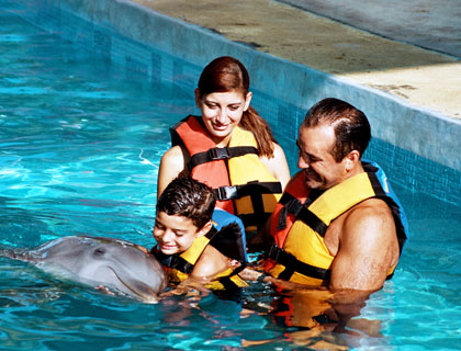 A program for all ages: Learn and have fun! The Dolphin Encounter is especially designed to bring you and your family closer to nature and discover plenty of information on these tender and playful animals that always seem to be smiling.