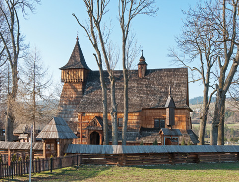 Castle ruins at Niedzica (13th -14th c.) and at Czorsztyn (14th - 18th c.) are also viewed during the trip. The climate here is mild and the slopes are well sun-lit. Later we stop at Debno to take a look at a wooden Gothic country church from the 15th c., which has an exquisite original polychromatic wall decoration inside - a relic of unique beauty. The church is entered on the UNESCO World Cultural Heritage List.