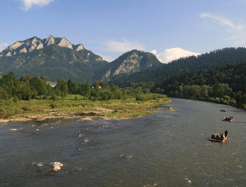 The Dunajec River Gorge runs through the Pieniny Mountains in the south of Poland and the north of Slovakia (as Dunajec is the border river between the two countries in the area). It is one of the best-known tourist attractions in the area. Wooden canoe trips have been organized daily by Goral highlanders since the early 19th century. It is an unique experience in Europe!
