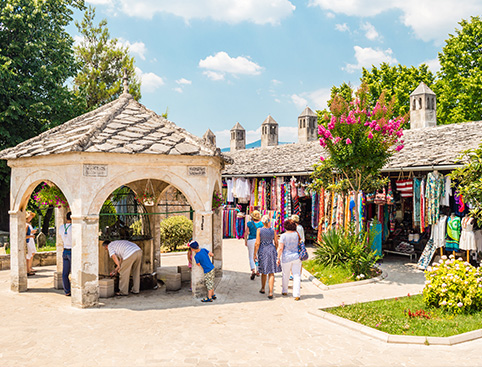Predominantly influenced by centuries’ long Turkish rule, tall, slim minarets reaching for the sky, cobbled bazaar street with rhythmic tapping of hammers against copper plates as they are being transformed into pretty souvenirs, houses with ornate wooden balconies will all remind you of times gone by.