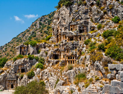 The finest examples of Lycian funerary architecture are to be found at Myra, near the expanding present day town of Demre. Beside all these, the church of St. Nicholas, who was the patron saint of children, is situated in the heart of the little town of Demre.