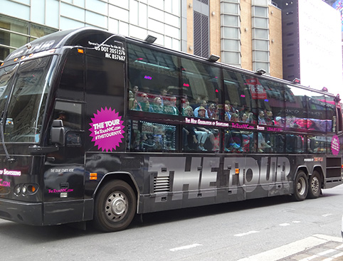 Tour Departure Point: THE TOUR will depart promptly from 45th Street and Broadway. (The line forms in front of the bus outside of the Marriott Marquis Hotel; look for THE TOUR employees wearing bright t-shirts).