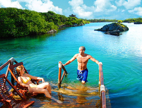 At Xel-Ha, you can enjoy the crystal clear waters of a spectacular natural aquarium, swim in creeks and lagoons, visit natural wells and ancient caves which are fed by underground rivers flowing out to the beautiful Caribbean Sea.